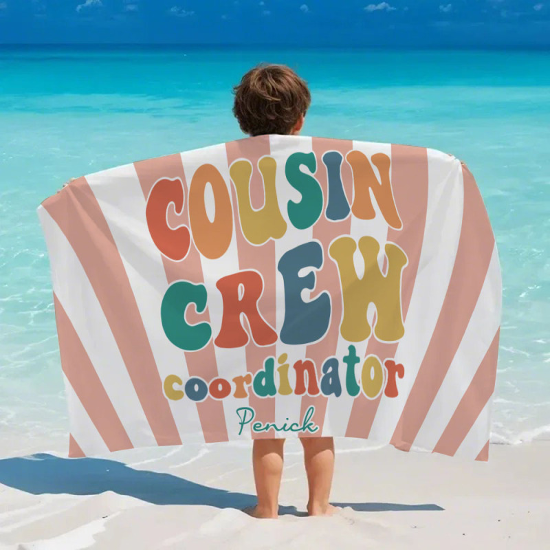 Personalized Cousin Beach Towel, Kids Custom Name Pool Towel, Cousin Vacation Crew Gift, Cousin Family Reunion Gift
