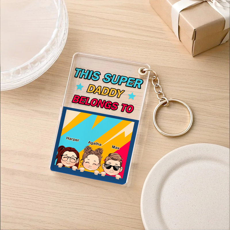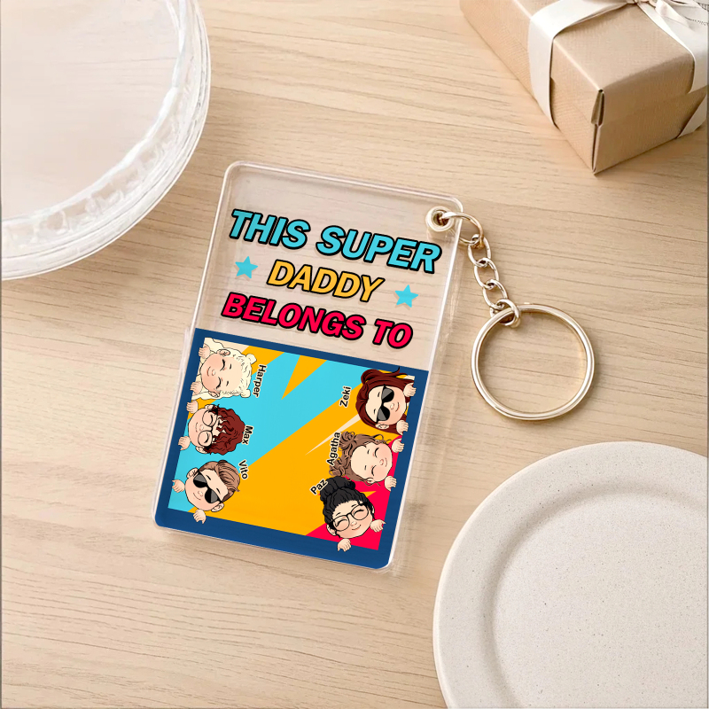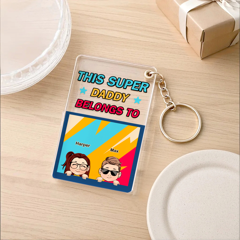 Personalized Father's Day Super Daddy Acrylic Keychain with Names Gifts for Dad