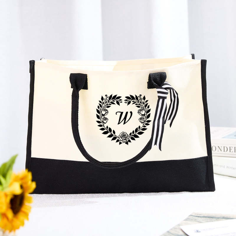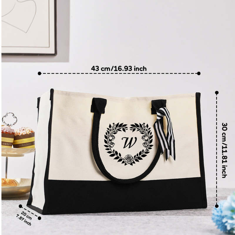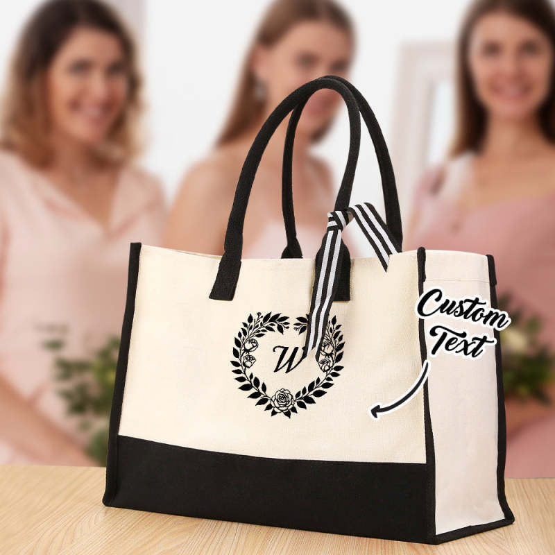 Personalized Wreath Initial Canvas Tote Bag Large Capacity Tote Bag Gift for Women