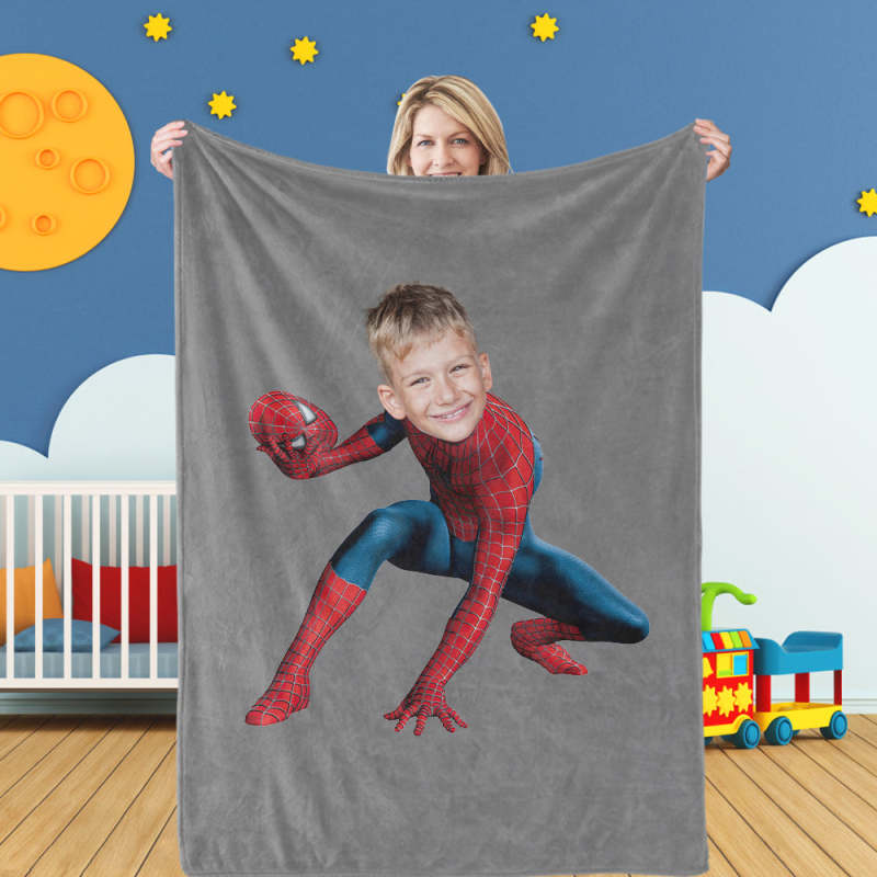 Son's Gifts Custom Spiderman Blankets Personalized Face Blankets Photo Blankets