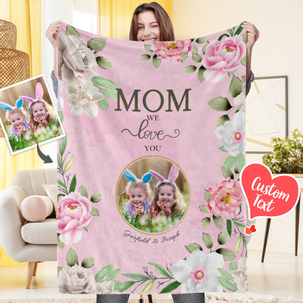 Custom Photo Engraved Blanket Flower Gifts for Mom