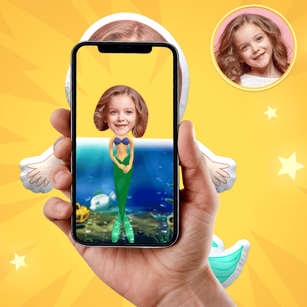 My Face Doll Custom Photo Pillow The Mermaid Throw Pillow AR View Gift