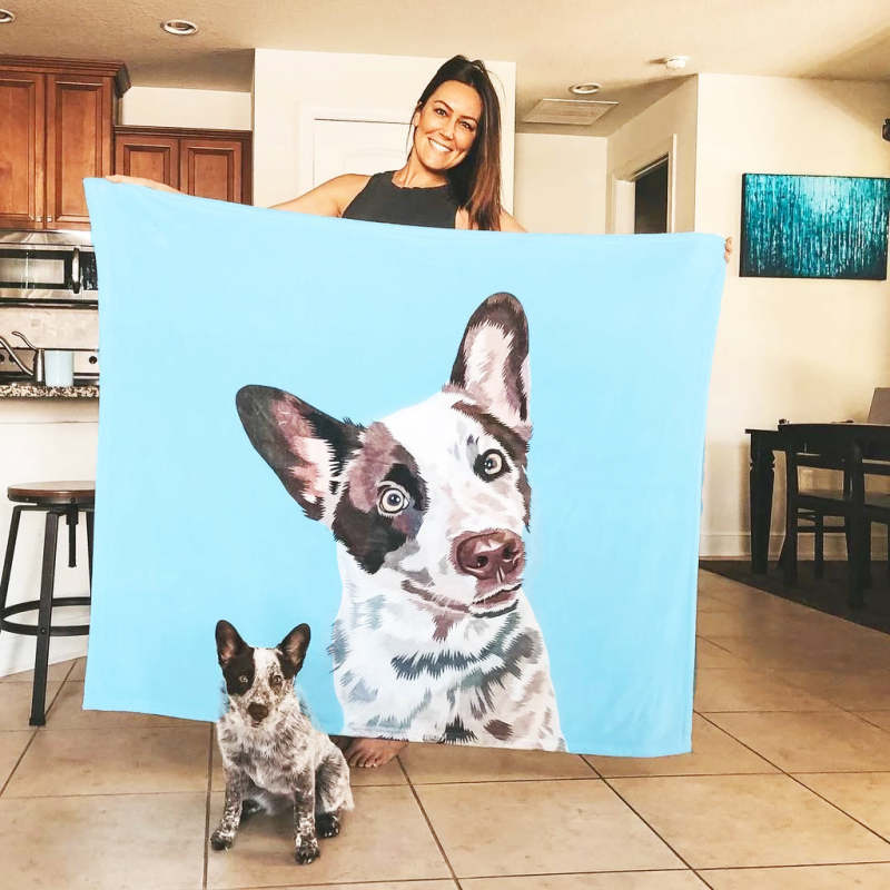 Custom Dog Blankets Personalized Pet Photo Blankets Painted Art Portrait Fleece Blanket