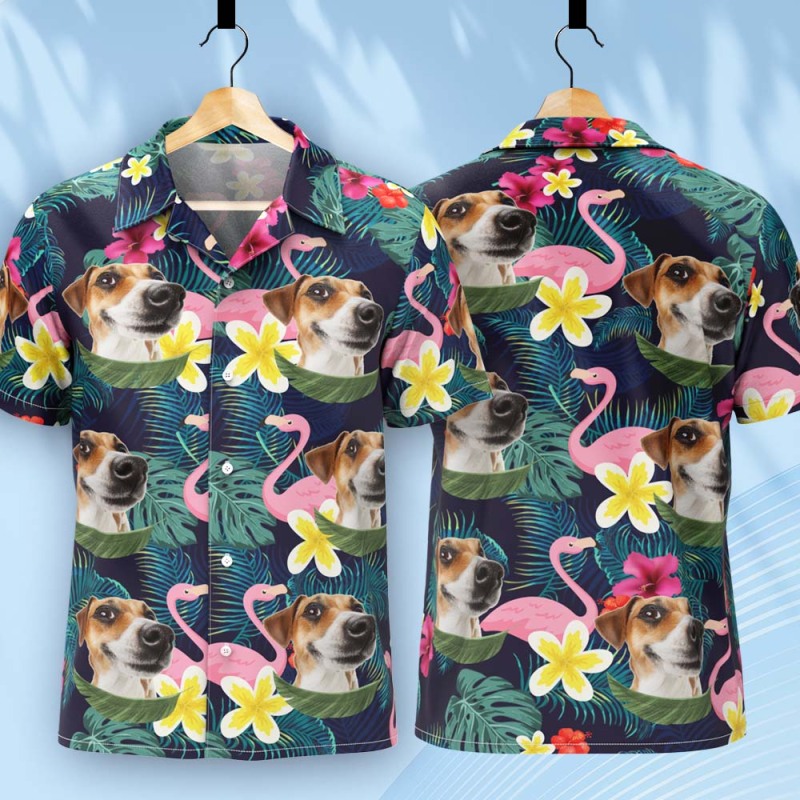 Custom Dog Photo Hawaiian Shirt, Personalized Hawaiian Shirt With Face, Custom Tropical Flower Hawaiian Shirt, Funny Hawaiian Shirt For Men