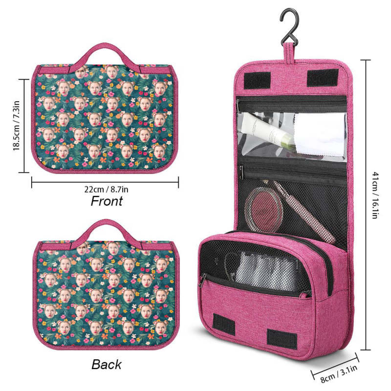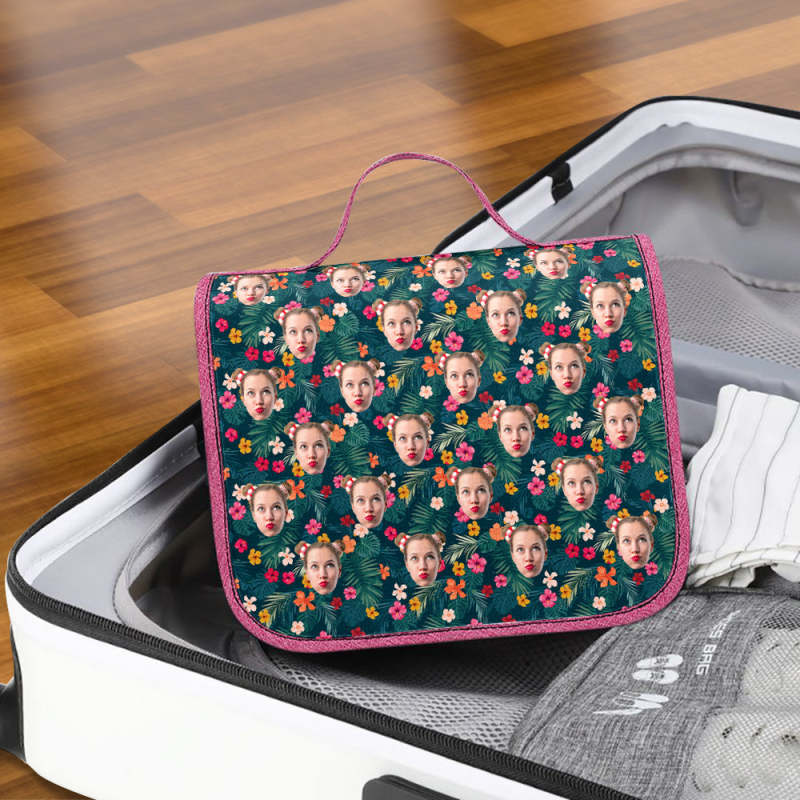 Custom Face Hanging Toiletry Bag Personalized Flower Cosmetic Makeup Travel Organizer for Men and Women