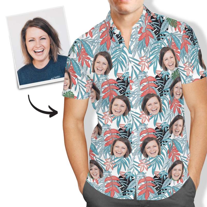 Custom Face Hawaiian Shirt Men's All Over Print Leaves