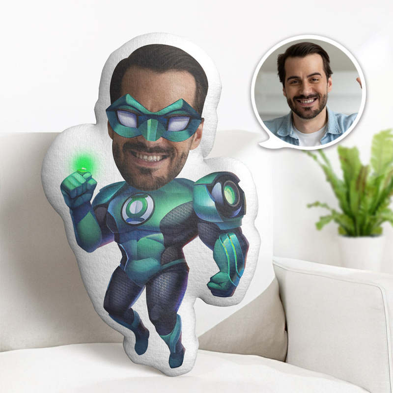 Custom Face Pillow Personalized Photo Pillow Green Lantern MiniMe Pillow Gifts for Him Superhero Gifts Minime Pillows