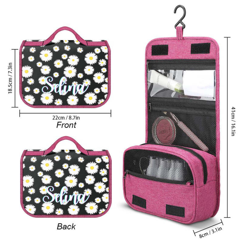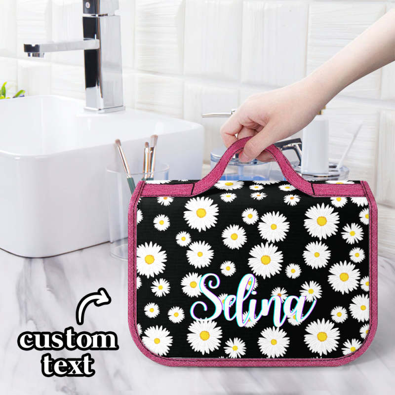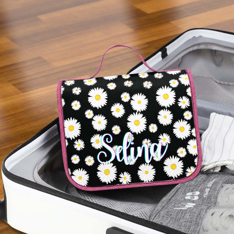 Custom Hanging Toiletry Bag Personalized Little Daisy Cosmetic Makeup Travel Organizer for Men and Women