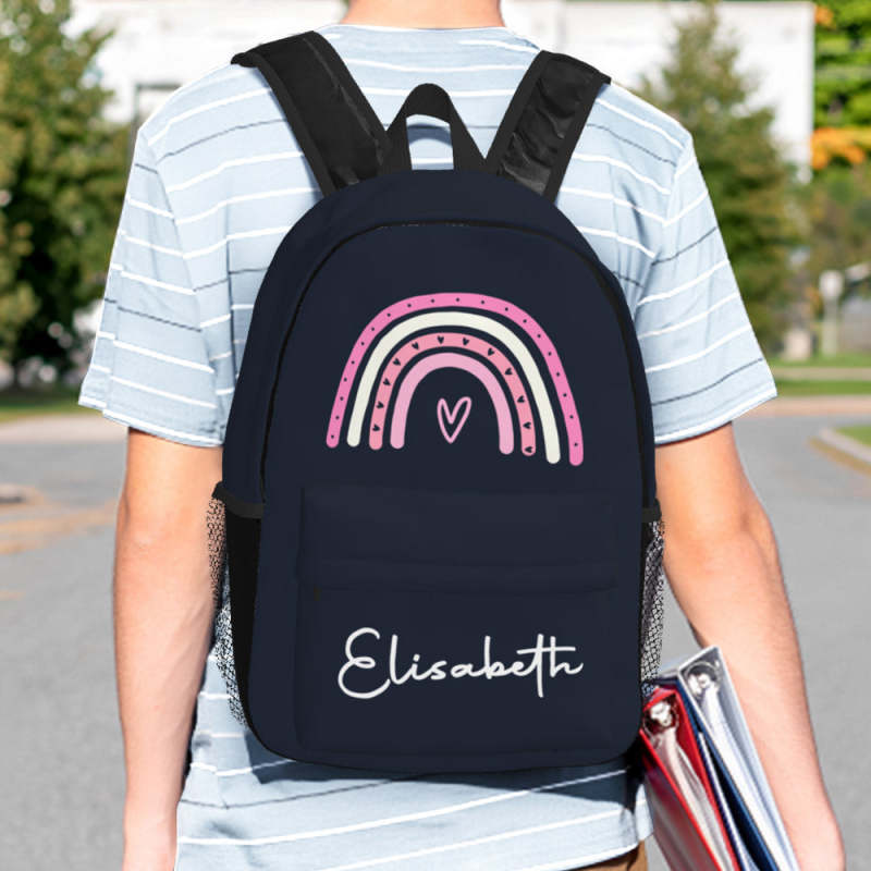 Custom Name Backpack Personalised Rainbow Design School Bag