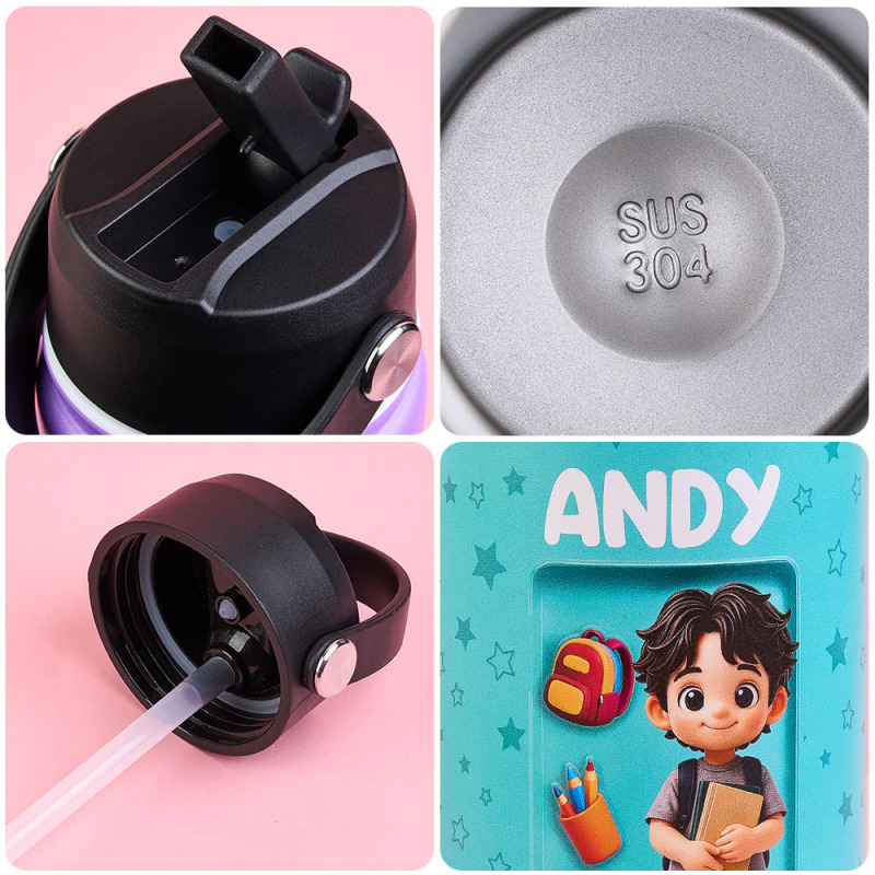 Custom Photo 3D Inflated Effect Printed Kids Water Bottle - Personalized Back To School Gifts For Kids