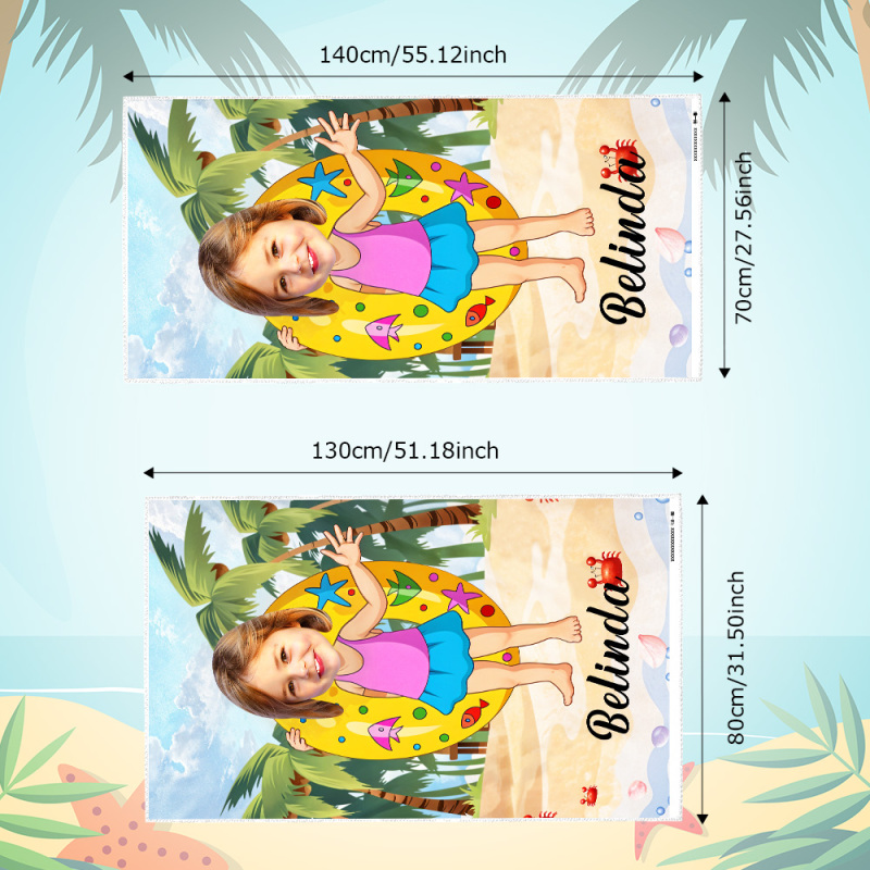 Custom Photo Beach Towel, Quick Dry Bath Towel,Girl With Swimming Ring Swimming Towel, No Sand Microfiber Beach Towel, Quick Dry Bath Towel