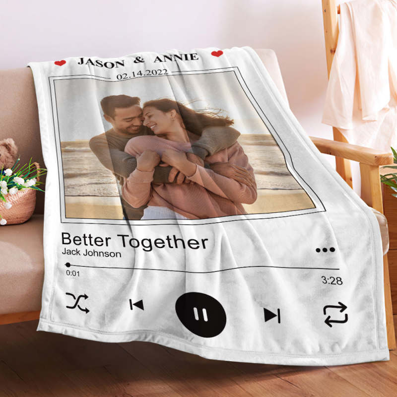 Custom Photo Blanket Personalized Couple Music Photo and Text Blanket Best Valentine's Day Gifts