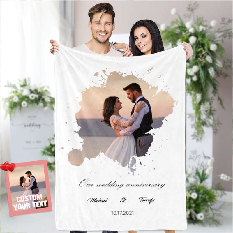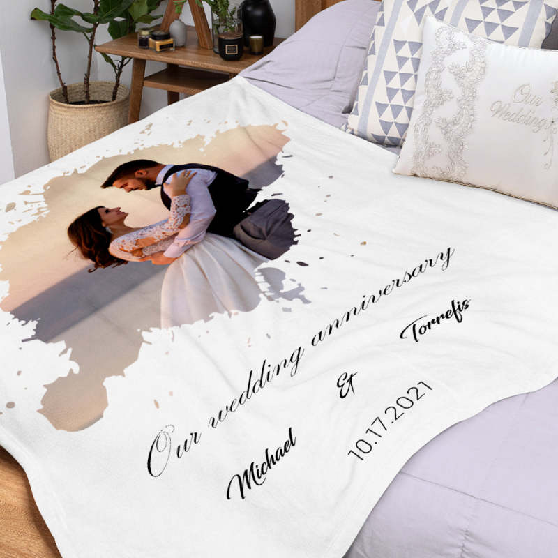 Custom Photo Blanket Watercolor Portrait Gift Our Wedding Anniversary Blanket