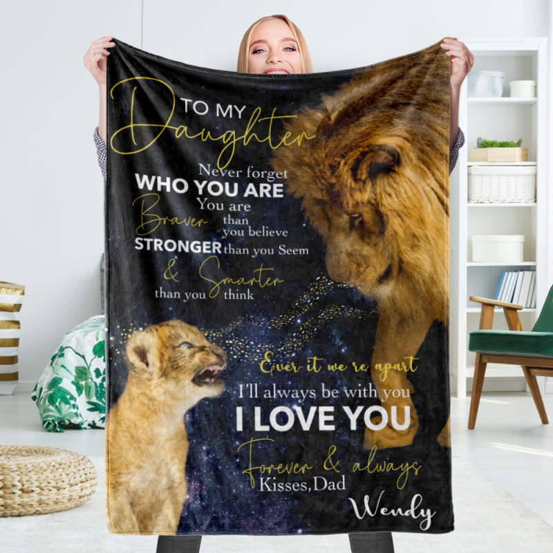 Custom Blankets Personalized Name Fleece Blanket-To My Daughter The Lion Daddy And Little Lion Blanket