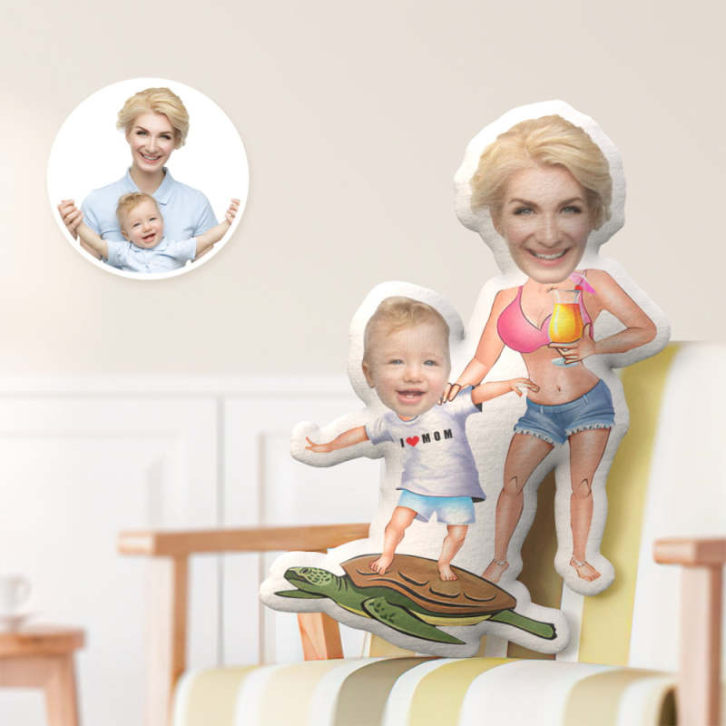 Mother's Day Gift Custom Face Pillow, Surfing Mom with Me Face Pillow
