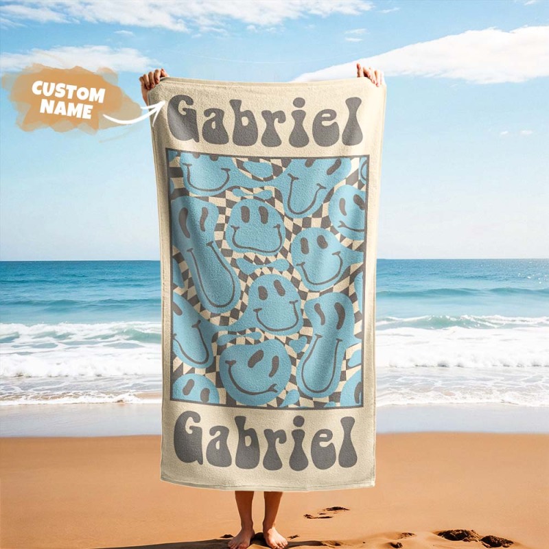 Retro Multi Style Beach Towel Personalized Name Bath Towel Personalized Pool Towel Beach Towel With Name Outside Birthday Holiday Gift
