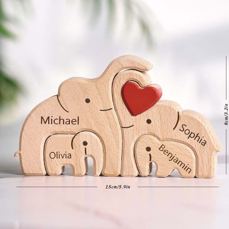 Wooden Family Elephant Puzzle Custom Names Home Decor House Christmas Gifts For Family