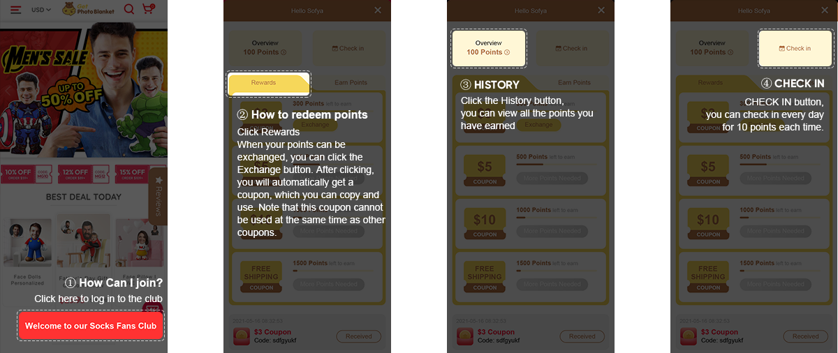 You can redeem GPB Club points for coupons and free shipping vouchers.