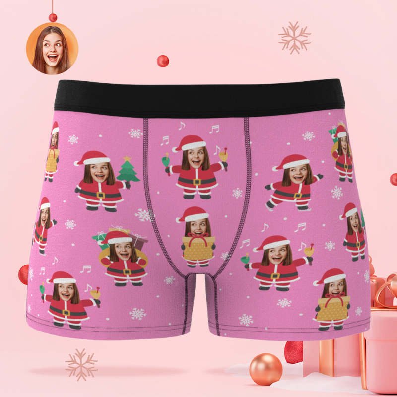 Custom Face Christmas Santa Pink Boxer Briefs Personalized Funny Christmas Gift