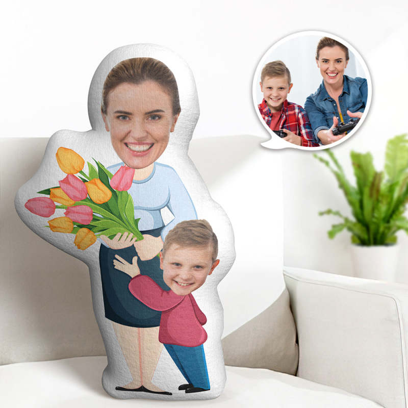 Custom Face Gifts Mother's Day With Flowers Minime Throw Pillow Your Own Photo Pillow