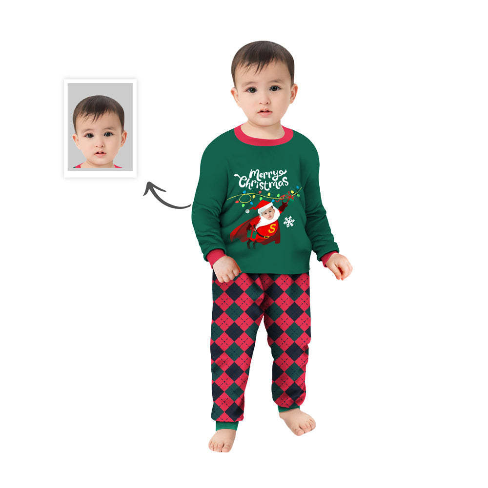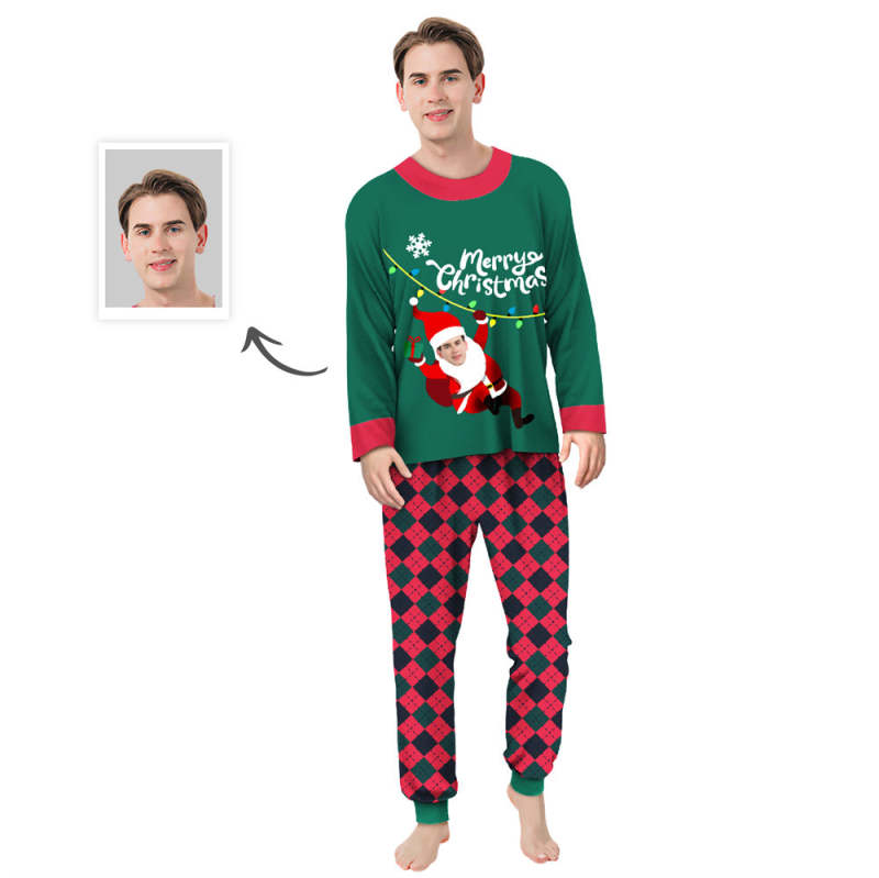 Custom Face Personalized Family Christmas Sleepwear Santa Claus LED Lights Pajamas Set