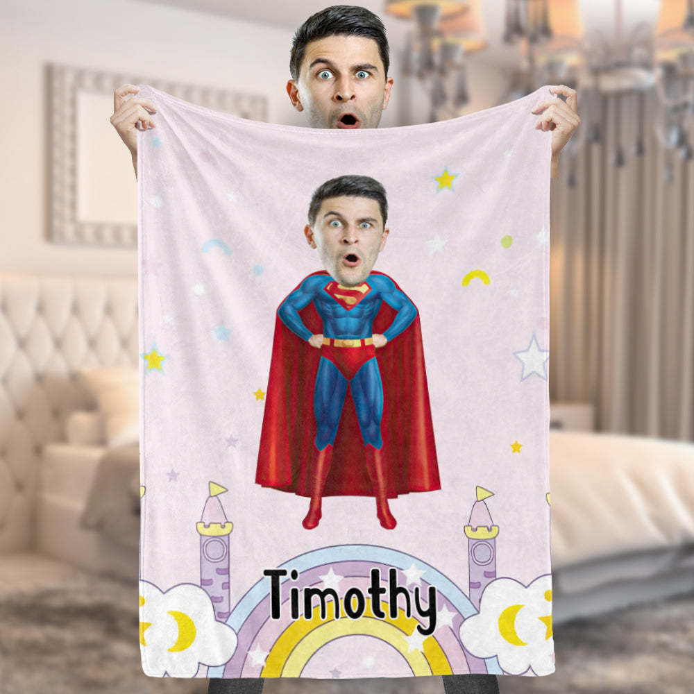 Custom Superman Minime Blanket Face Photo Blanket Personalized Photo and Text Blanket A Unique Cool Gift For Him
