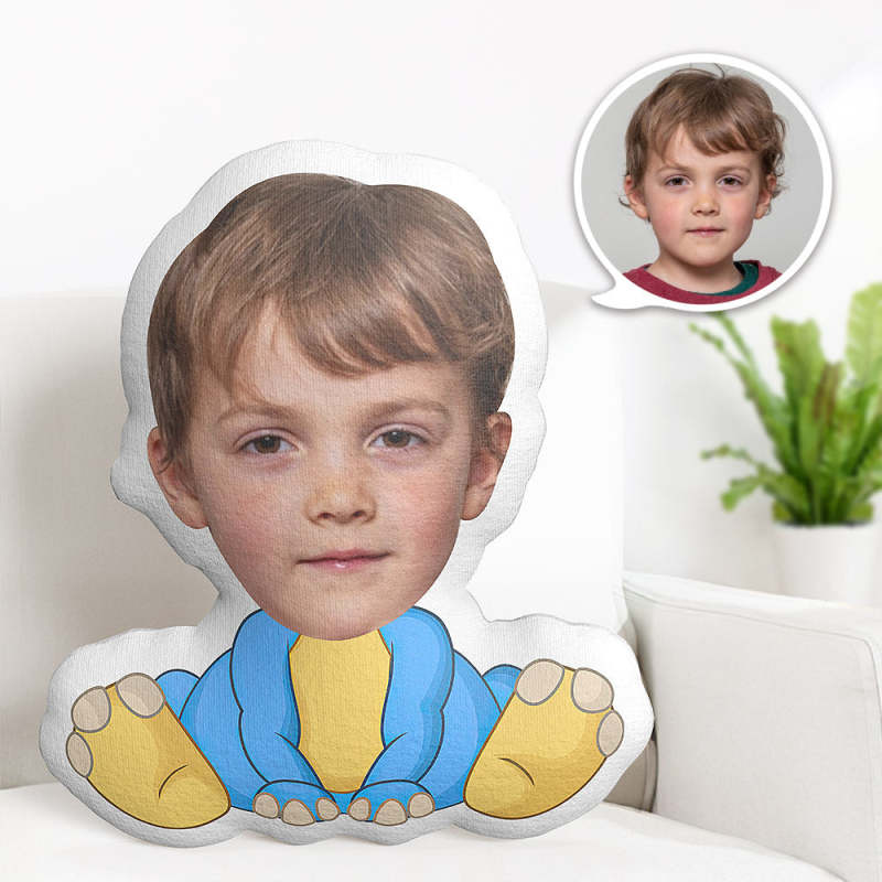 Custom Face Pillow Personalized Photo Pillow Blue and Yellow Dinosaur MiniMe Pillow Gifts for Kids