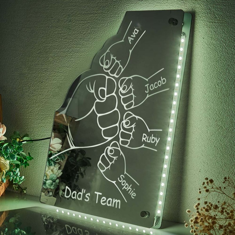 Custom Family Name Mirror Light Personalized Father's Day Fist Mirror Light