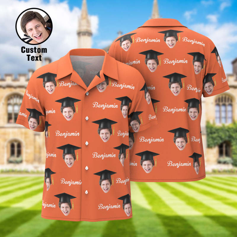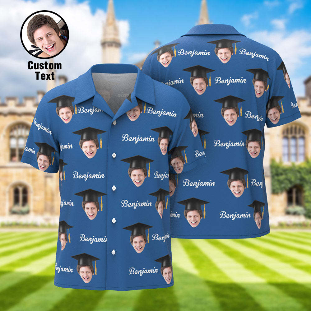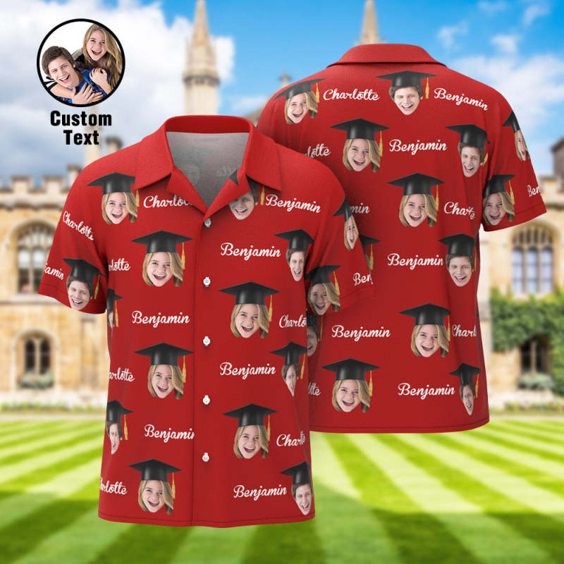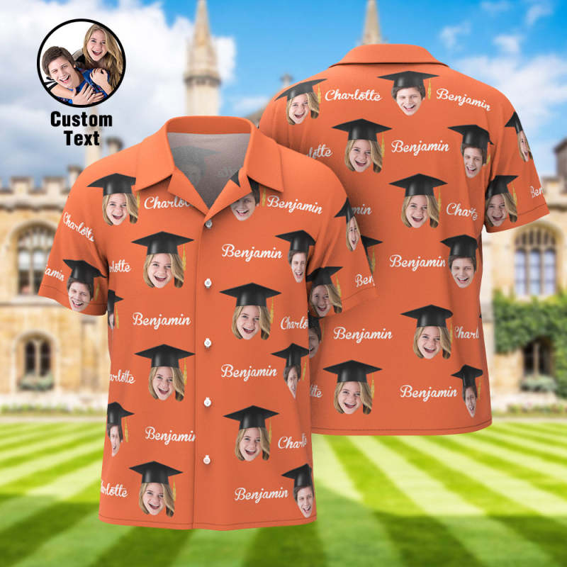 Custom Men's Hawaiian Shirt Personalized Face and Name Aloha Shirts for Graduation Party