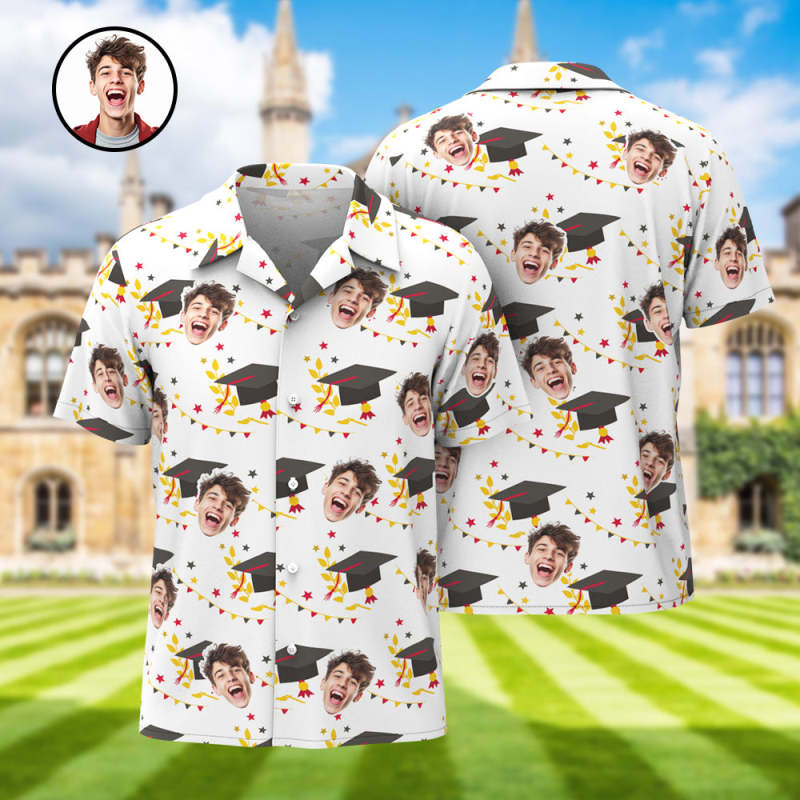 Custom Men's Hawaiian Shirt with Face and Name Personalized Graduation Party Aloha Shirts
