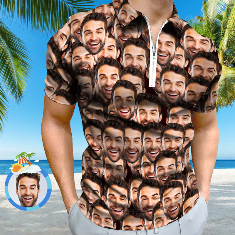 Custom Men's Polo Shirt Personalized Face Funny Polo Shirt with Zipper
