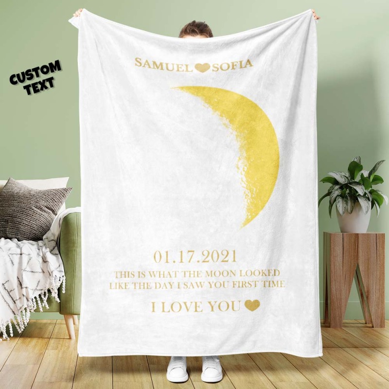 Custom Moon Phase Blanket Personalized Names Multistyle Background Blanket Birthday Gift