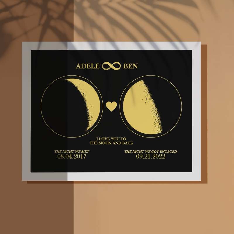 Custom Moon Phase Custom Couple Art Frame 2 Moon Phases Design - For Valentine's Day Gifts