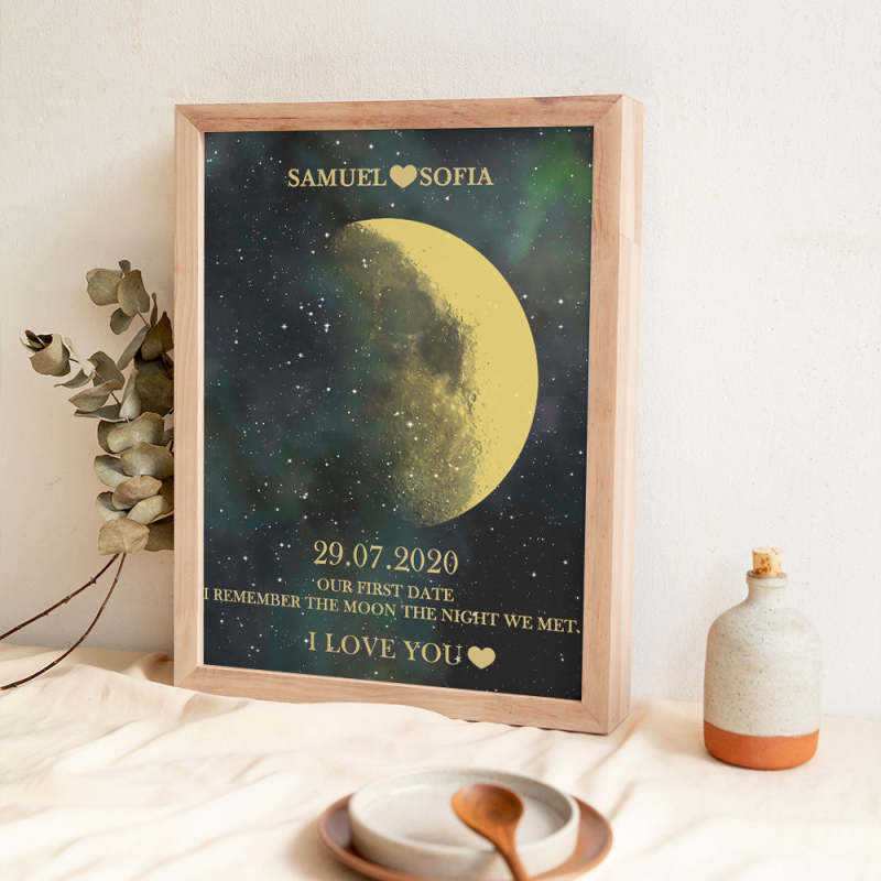 Custom Moon Phase Gold Print Frame Gifts for Birthday and Anniversary