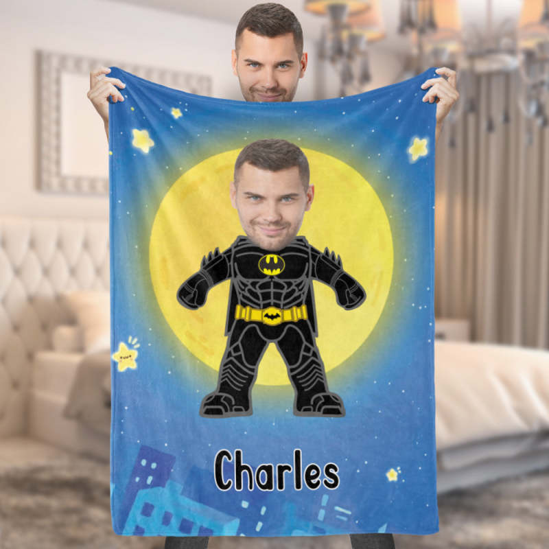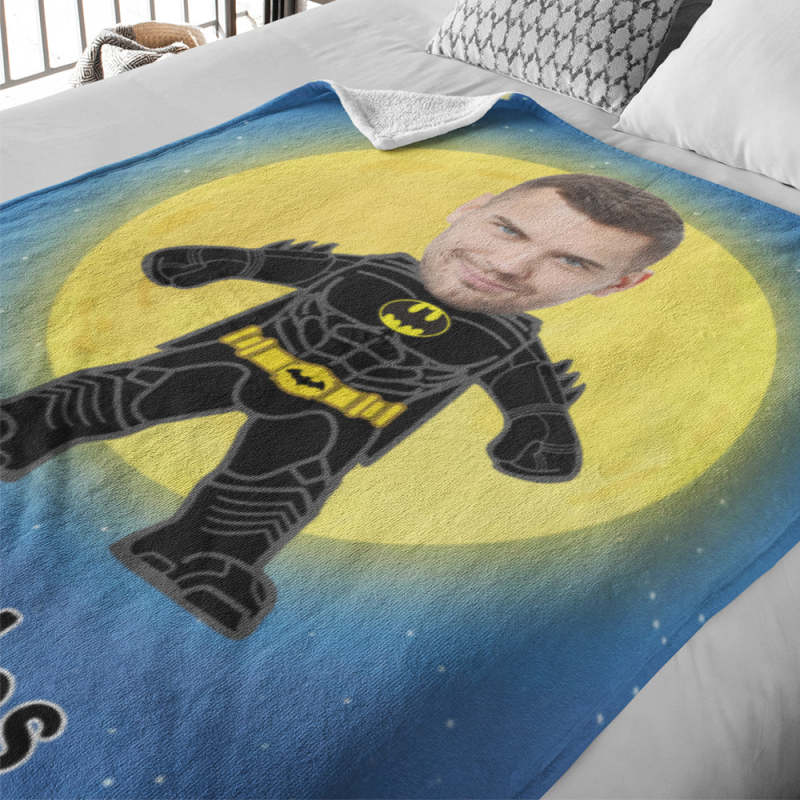 Custom My Face Blanket Personalized Photo and Text Blanket Minime Batman Blanket Best Gift For Him