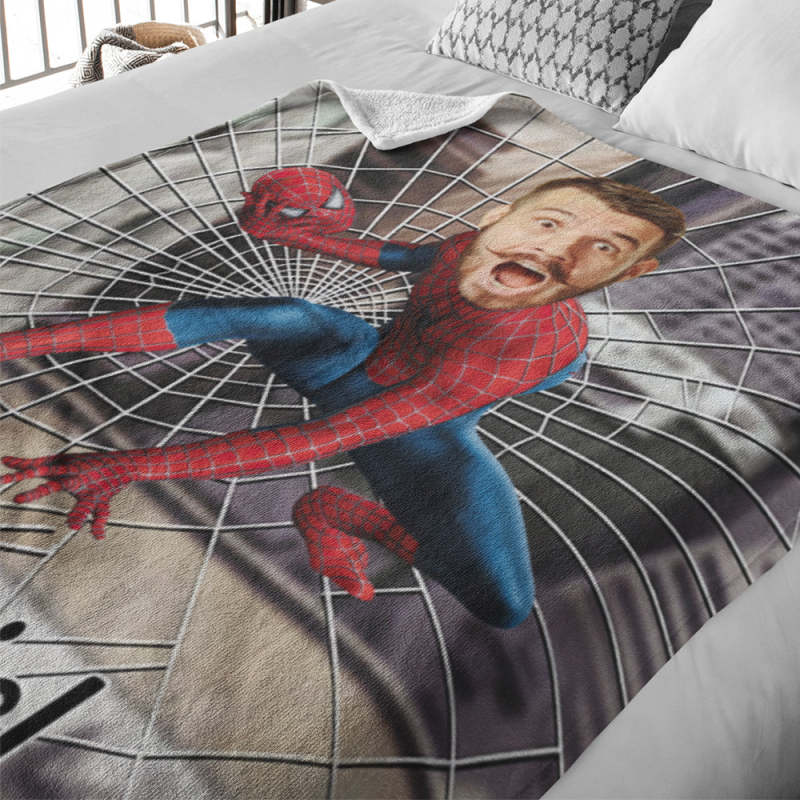 Custom My Face Blanket Personalized Photo and Text Blanket Minime Spiderman Blanket Best Gift For Him
