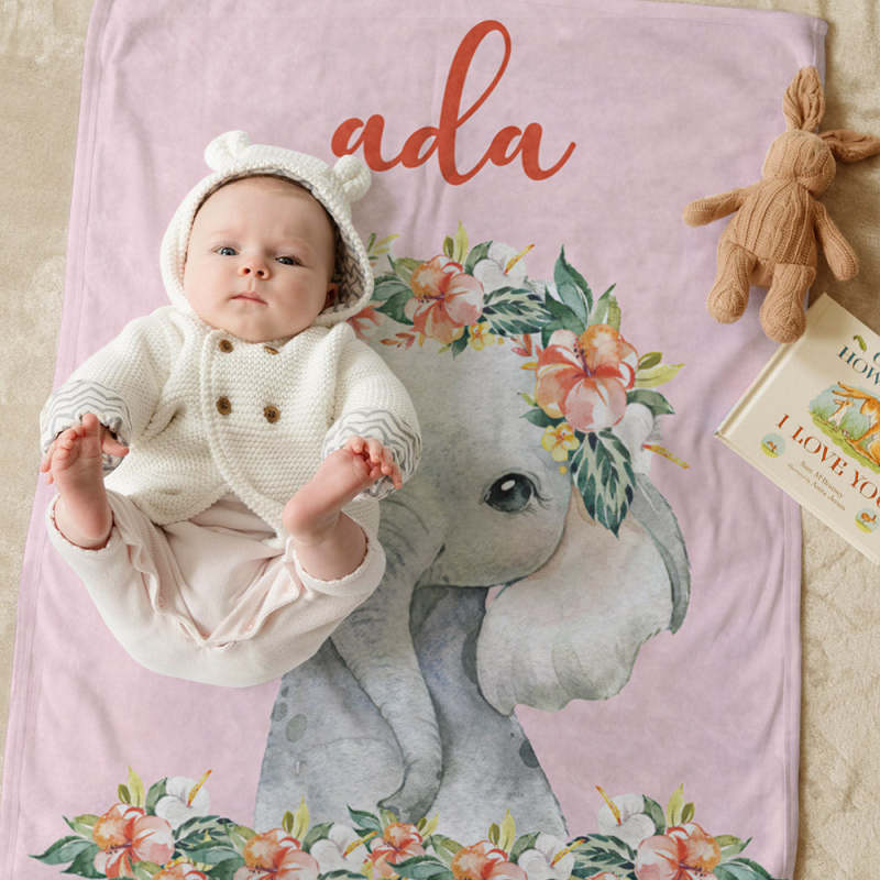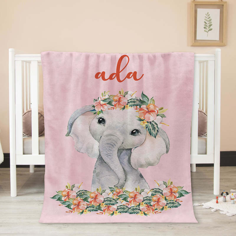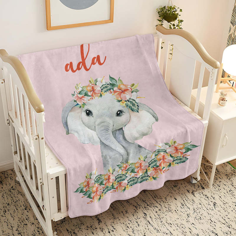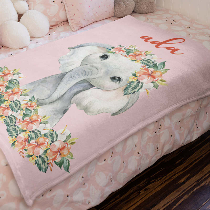 Custom Name Blanket Pink Elephant Blanket Romantic Gifts for Little Girl