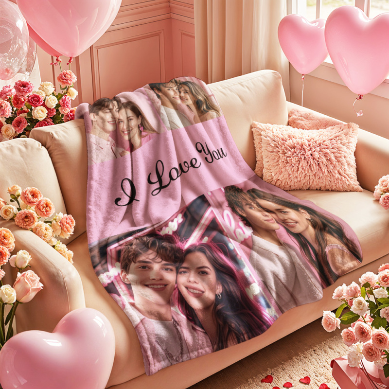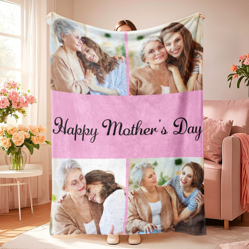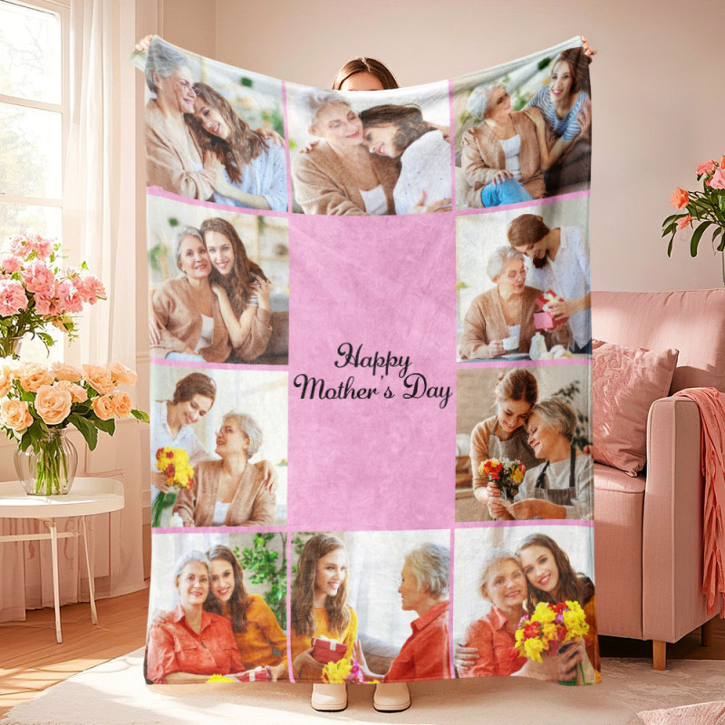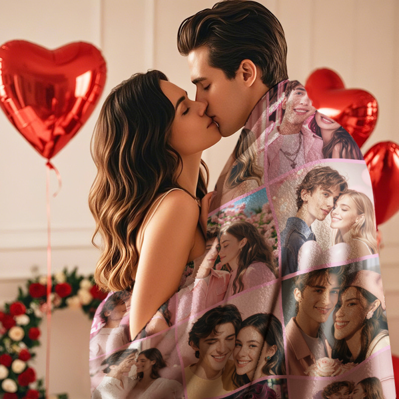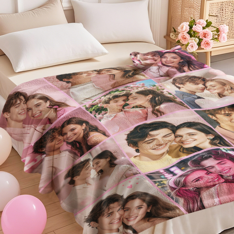 Custom Photo Blanket Collage Personalized Multiple Photos with Text Blanket