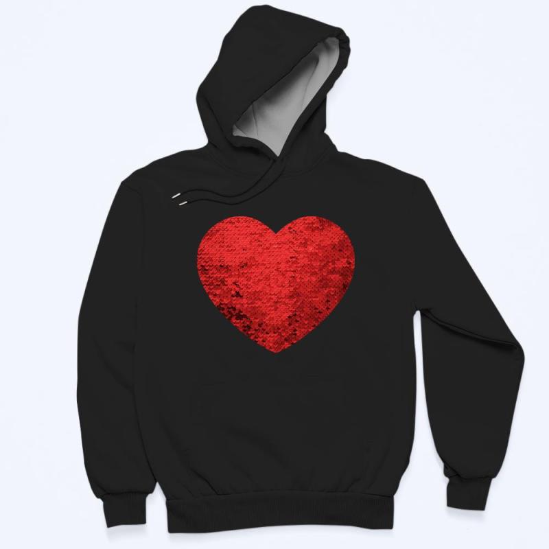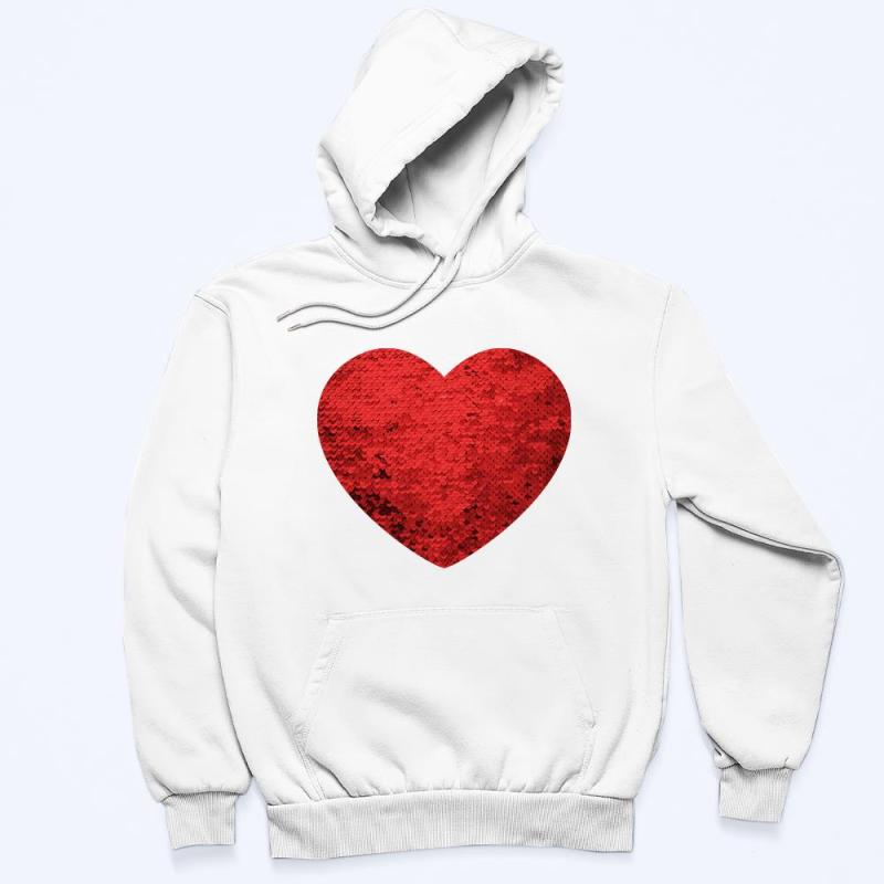 Custom Photo Flip Red Sequin Hoodie Heart-Shaped Print Hoodie Gift for Lover