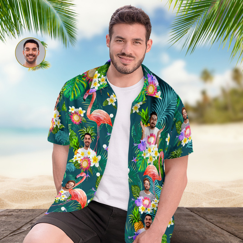 Custom Photo Funny Human Aloha Hawaii Shirt Sunflower Flamingo Shirt