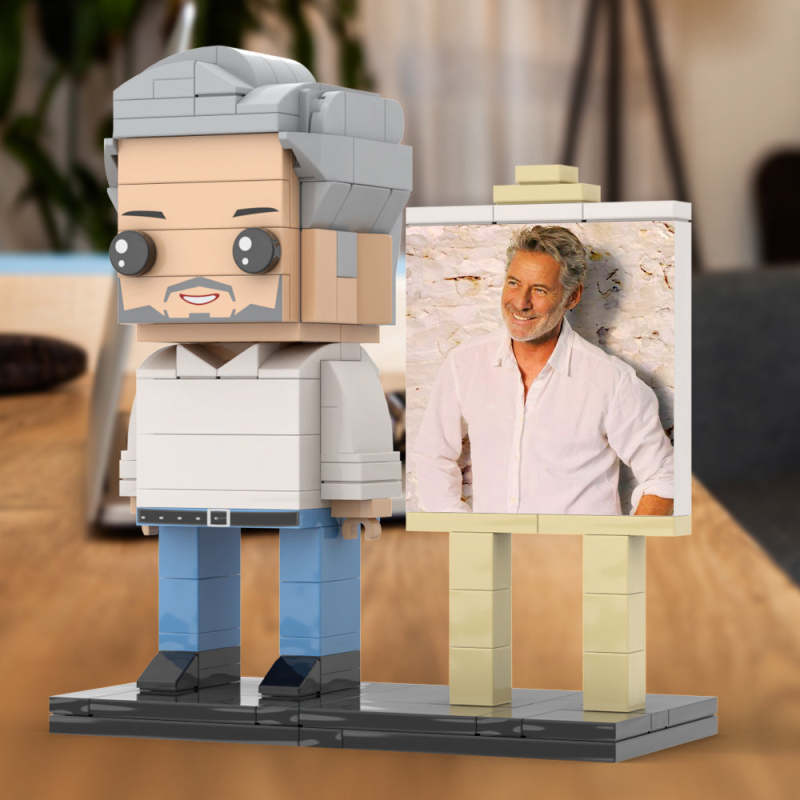 Full Body Customizable 1 Person Daddy With Classic White Shirt And Jeans Custom Brick with Frame Figures Small Particle Block Toy Brick Me Figures For Father's Day