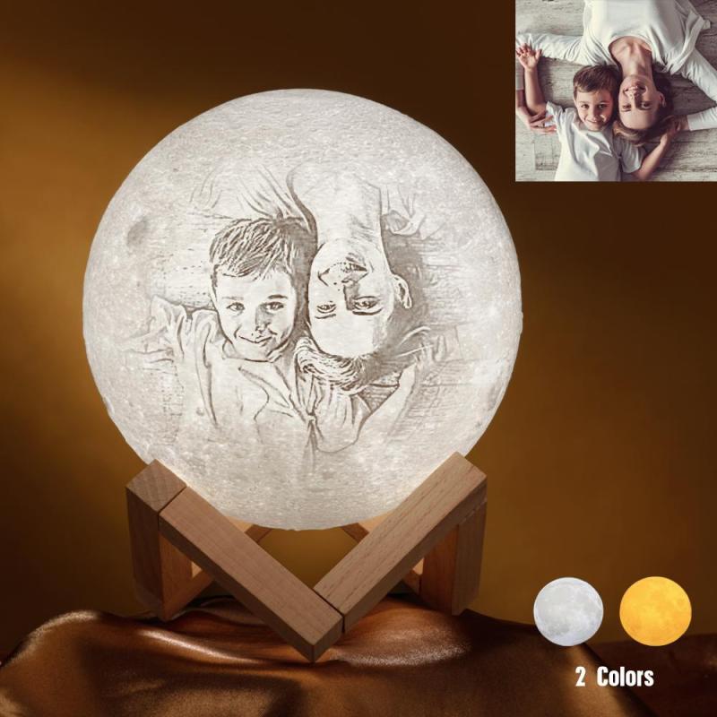 Custom Creative 3D Print and Engraved Personalized Photo Moon Lamp - Touch Two Colors