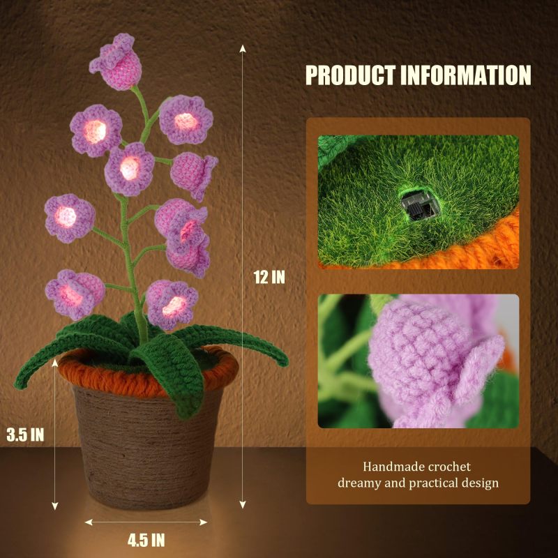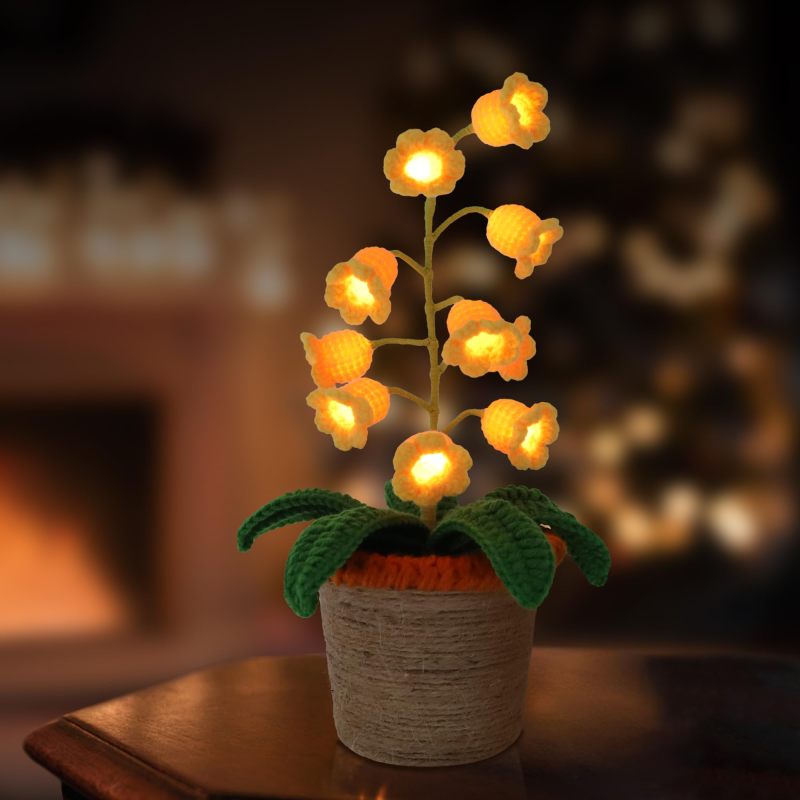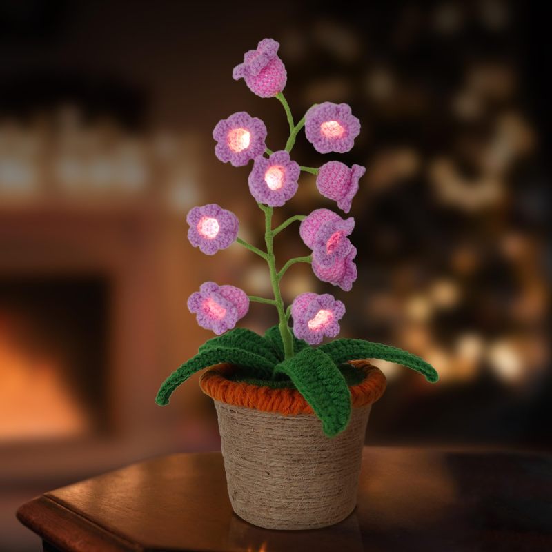 Handmade Crochet Lily of the Valley Flower Lamp | Potted Desk Light | Finished Floral Night Light