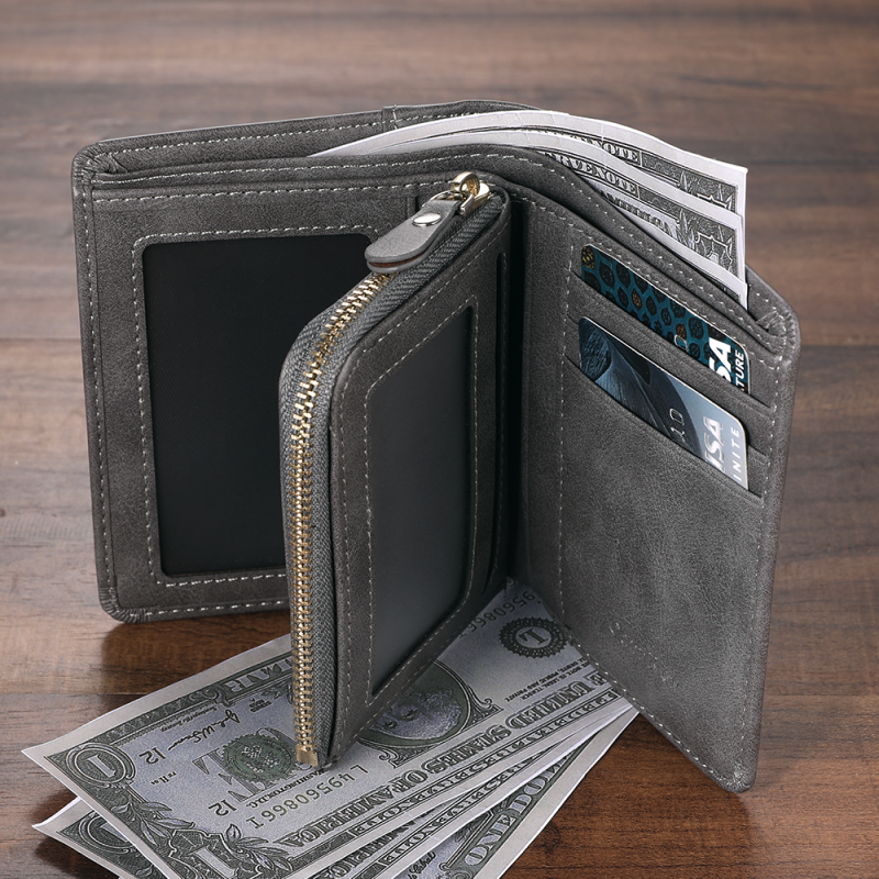 Men's Custom Engraved Photo Wallet Grey Leather With Coin Pocket Men's Custom Engraved Photo Wallet Grey Leather With Coin Pocket Men's Custom Engraved Photo Wallet Grey Leather With Coin Pocket