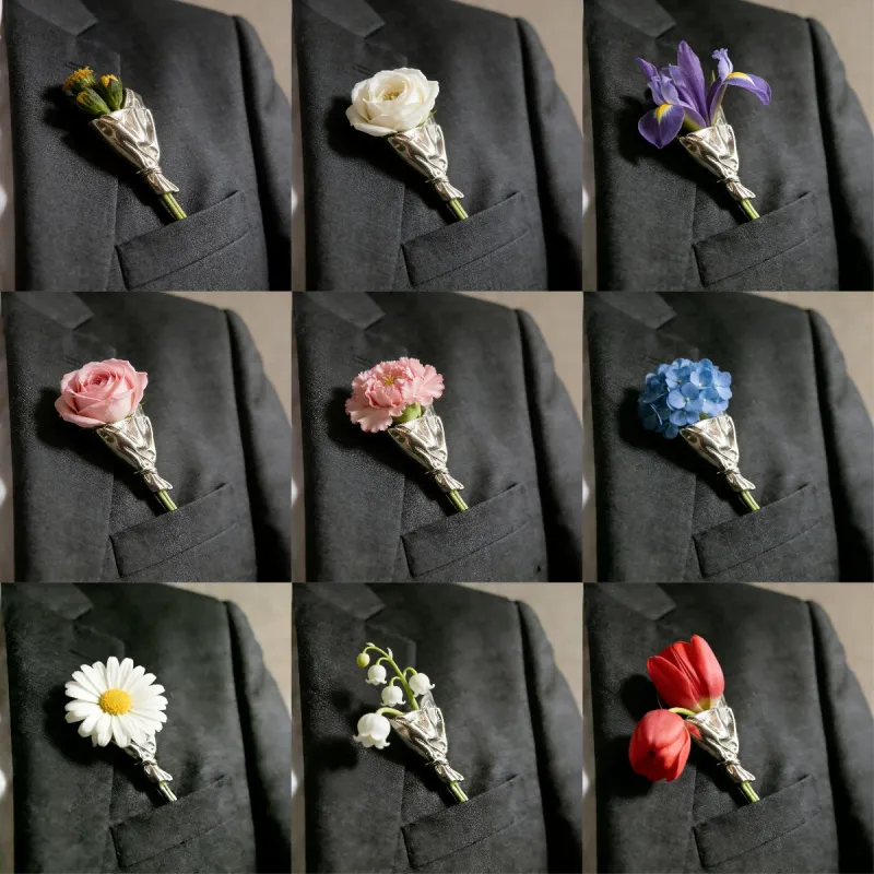Mini Bouquet Necklace & Brooch Flower Holder Jewelry with Bow Design