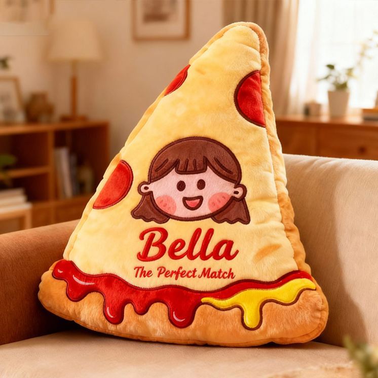 Personalized Cheese Pizza Girl and Crispy Fries Boy Pillow with Name & Face Custom Couple Cushion Gift for Her/Him