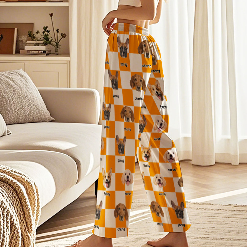Personalized Dog Cat Face Photo Multicolor Plaid Name Pajama Pants Birthday Christmas Gift for Women Men Pet Lovers